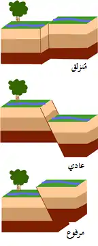 - الصدع وانزلاق الصخور عليه والذي يعرف بالزلازل التكتونية.