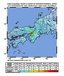 |CitationClass=تم تجاهله (مساعدة) - "Strong earthquake shakes Osaka". NHK. NHK. 18 June 2018. مؤرشف من الأصل في 18 يونيو 2018. اطلع عليه بتاريخ 18 يونيو 2018. الوسيط