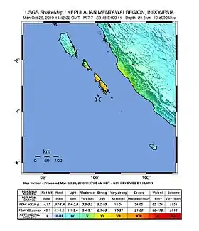 |CitationClass=تم تجاهله (مساعدة); تحقق من التاريخ في:|تاريخ أرشيف=(مساعدة) - "Magnitude 5.0 – SOUTHWEST OF SUMATRA, INDONESIA". earthquake.usgs.gov. USGS. 2010-10-26. مؤرشف من الأصل في 30 أكتوبر 2010. اطلع عليه بتاريخ 27 أكتوبر 2010. الوسيط
