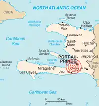 زلزال هايتي كان هزة أرضية بلغت قوتها 7.0 درجة على مقياس ريختر، وكان مركزها يبعد نحو 10 أميال (17 كيلومتر) جنوب غربي العاصمة الهايتية بورتو برنس. وقع الزلزال في يوم الثلاثاء 12 يناير 2010 في تمام 16:53:09 بالتوقيت المحلي (21:53:09 بالتوقيت العالمي الموحد[2]).