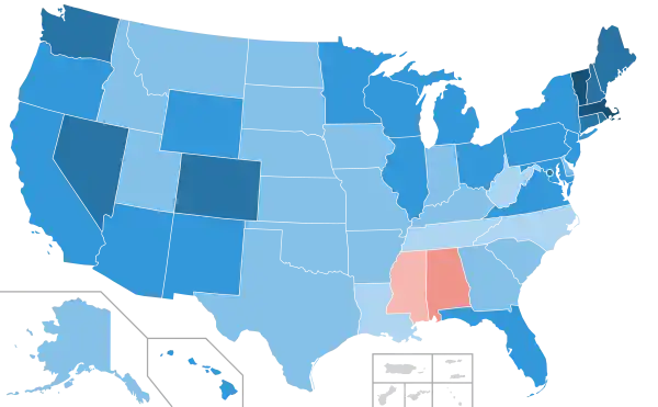 | 7,061,530 | 6 نوفمبر 2012 | 6 ديسمبر 2012 | قانون تشريعي ← الاستفتاء | مررته الهيئة التشريعية لولاية واشنطن؛ تم تعليقه بسبب عريضة وأحيل إلى الاستفتاء 74، تمت الموافقة عليه. | |