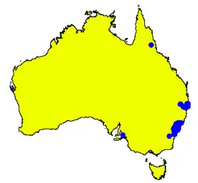 - "Angophora bakeri E.C.Hall". مؤشر اسم النبات الأسترالي (APNI)، قاعدة بيانات IBIS. مركز بحوث التنوع البيولوجي للنبات، الحكومة الأسترالية. الوسيط