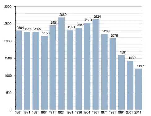 في سنة 1861 بلغ عدد السكان 2٬304 نسمة، وتطور العدد ليصل في سنة 2011 لـ 1٬197 نسمة.