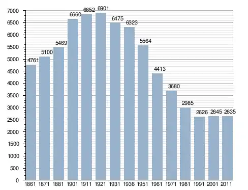 في سنة 1861 بلغ عدد السكان 4٬761 نسمة، وتطور العدد ليصل في سنة 2011 لـ 2٬635 نسمة.