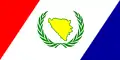 علم جامعة الدول العربية ويبدو أن غصني زيتون يحيطان باسم المنظمة.