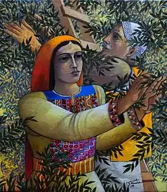 كما تستخدم شجرة الزيتون لترمز للصمود والتمسك بالأرض في الثقافة الفلسطينية الحديثة[18]، إلى جانب حضورها الواضح في الرموز والثقافة التقليدية باعتبارها رمزاً وطنياً[19]، واستخدامها شائع كأيقونة.