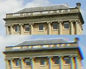 في الأعلى: صورة بدون زيغ لوني، في الأسفل: زيغ لوني