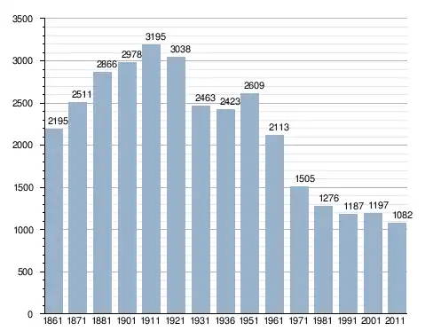 في سنة 1861 بلغ عدد السكان 2٬195 نسمة، وتطور العدد ليصل في سنة 2011 لـ 1٬082 نسمة.