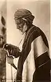 اما الرجل فكان له لباسه التقليدي أيضا: