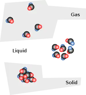 ويتغير كل سائل عند نقطة غليانه إلى غاز، وعند نقطة تجمده إلى صلب. وخلال التقطير التجزيئي يمكن فصل السوائل من بعضها عند تبخرها عند نقطة غليان كل منها. التلاصق بين جزيئات السائل لا يستطيع منع الجزيئات السطحية من التبخر.[1]