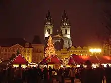 أسواق عيد الميلاد في ساحة البلدة القديمة هي أكبر أسواق عيد الميلاد في الجمهورية التشيكية ويزورها مئات الآلاف من الزوار من داخل الجمهورية التشيكية ومن خارجها. تقام شجرة طويلة مزينة ومنصة موسيقية. معظم رائري الأسواق هم من الألمان والروس والإيطاليين والبريطانيين.[4][5]