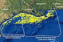 اكتشاف مكامن النفط والغاز على طول الساحل وفي البحر، جنبا إلى جنب مع سهولة الوصول إلى النقل البحري، جعلت ساحل الخليج قلب صناعة البتروكيماويات في الولايات المتحدة. الساحل يحتوي على ما يقرب من 4،000 منصة نفط.