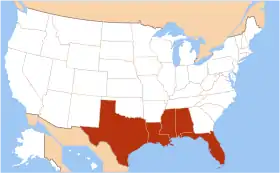 | التقسيم الأعلى | تكساس لويزيانا مسيسيبي ألاباما فلوريدا |