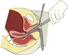 - منظار المهبل ذو اليدين: جهاز يقوم بفتح جدار المهبل ليتمكن الطبيب من فحص المهبل وعنق الرحم.