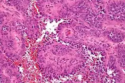 ![]() صورة مجهرية للساركوما الوعائية (صبغة H&E). صورة مجهرية للساركوما الوعائية (صبغة H&E). | |
