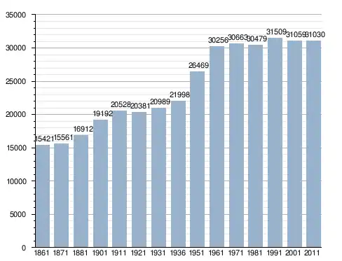 في سنة 1861 بلغ عدد السكان 15٬421 نسمة، وتطور العدد ليصل في سنة 2011 لـ 31٬030 نسمة.