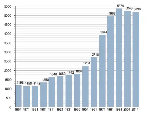 في سنة 1861 بلغ عدد السكان 1٬198 نسمة، وتطور العدد ليصل في سنة 2011 لـ 5٬198 نسمة.