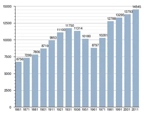 في سنة 1861 بلغ عدد السكان 6٬756 نسمة، وتطور العدد ليصل في سنة 2011 لـ 14٬545 نسمة.