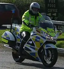 ساعي على دراجة هوندا اس تي 1300 دراجة الدم التي تديرها جمعية أحرار الخدمة الطوعية الطارئة في جنوب غرب انجلترا