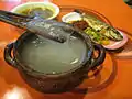 طريقة أخرى: يوضع السكر على نار هادئة حتى يذوب و يتغير لونه، ويُحرص على أن لا يحترق حتى يصبح (ذهبياً فاتح اللون). ثم يضاف له الماء ويترك يغلي، ثم يضاف له السمن و الهال و الزعفران وماء الورد. عندما يغلي الجميع نخفض النار ويضاف الساقو و يقلب الجميع جيدا ويحرك باستمرار إلى أن تذوب الحبيبات البيضاء، ويصبح متماسكاً كالحلوى. و نتركه على النار حتى ينضج وهو أن يزول اللون الأبيض من وسط الساقو. قد يحتاج لأكثر من ساعة.