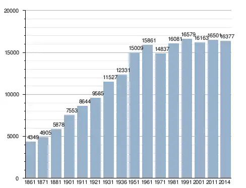 في سنة 1861 بلغ عدد السكان 4٬349 نسمة، وتطور العدد ليصل في سنة 2014 لـ 16٬377 نسمة.