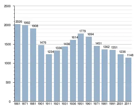 في سنة 1861 بلغ عدد السكان 2٬026 نسمة، وتطور العدد ليصل في سنة 2011 لـ 1٬148 نسمة.