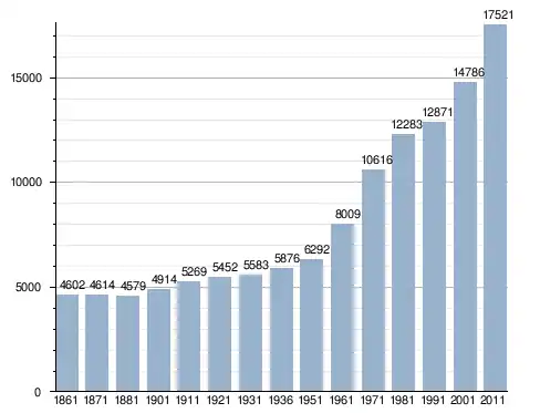 في سنة 1861 بلغ عدد السكان 4٬602 نسمة، وتطور العدد ليصل في سنة 2011 لـ 17٬521 نسمة.