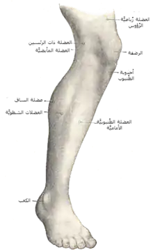 • العضلة الشظوية الطويلة • العضلة الشظوية القصيرة • العضلة عاطفة الأصابع الطويلة • العضلة الظنبوبية الخلفية |