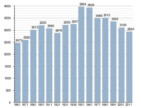 في سنة 1861 بلغ عدد السكان 2٬473 نسمة، وتطور العدد ليصل في سنة 2011 لـ 2٬934 نسمة.