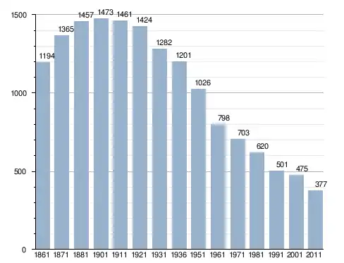 في سنة 1861 بلغ عدد السكان 1٬194 نسمة، وتطور العدد ليصل في سنة 2011 لـ 377 نسمة.