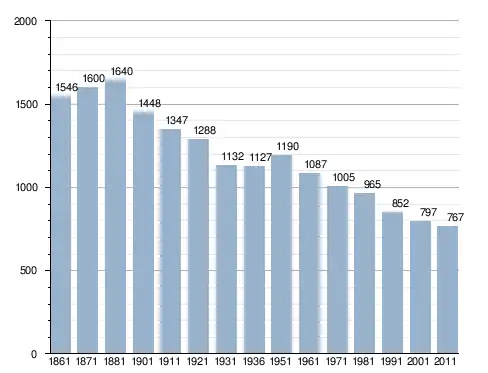في سنة 1861 بلغ عدد السكان 1٬546 نسمة، وتطور العدد ليصل في سنة 2011 لـ 767 نسمة.