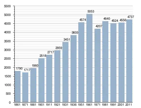 في سنة 1861 بلغ عدد السكان 1٬790 نسمة، وتطور العدد ليصل في سنة 2011 لـ 4٬737 نسمة.