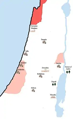 مملكة سالومي الأولي، شقيقة هيرودس الكبير (بالون البرتقالي) وسوريا الرومانية (باللون الأحمر).