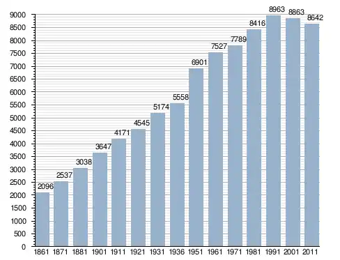 في سنة 1861 بلغ عدد السكان 2٬096 نسمة، وتطور العدد ليصل في سنة 2011 لـ 8٬642 نسمة.