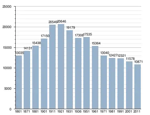 في سنة 1861 بلغ عدد السكان 13٬035 نسمة، وتطور العدد ليصل في سنة 2011 لـ 10٬871 نسمة.