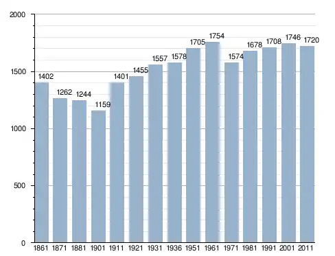 في سنة 1861 بلغ عدد السكان 1٬402 نسمة، وتطور العدد ليصل في سنة 2011 لـ 1٬720 نسمة.