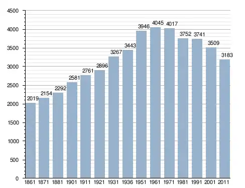 في سنة 1861 بلغ عدد السكان 2٬019 نسمة، وتطور العدد ليصل في سنة 2011 لـ 3٬183 نسمة.