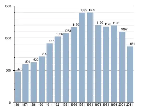 في سنة 1861 بلغ عدد السكان 478 نسمة، وتطور العدد ليصل في سنة 2011 لـ 871 نسمة.