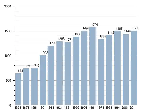 في سنة 1861 بلغ عدد السكان 643 نسمة، وتطور العدد ليصل في سنة 2011 لـ 1٬503 نسمة.