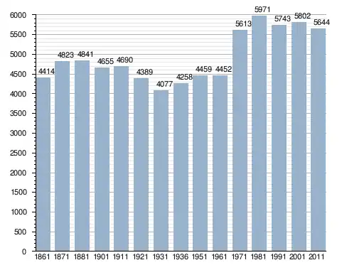 في سنة 1861 بلغ عدد السكان 4٬414 نسمة، وتطور العدد ليصل في سنة 2011 لـ 5٬644 نسمة.