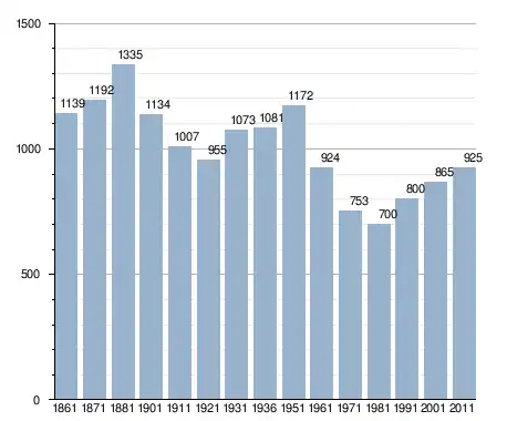 في سنة 1861 بلغ عدد السكان 1٬139 نسمة، وتطور العدد ليصل في سنة 2011 لـ 925 نسمة.