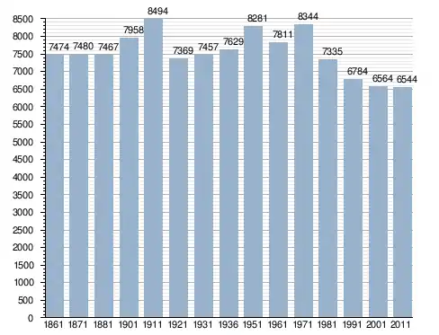 في سنة 1861 بلغ عدد السكان 7٬474 نسمة، وتطور العدد ليصل في سنة 2011 لـ 6٬544 نسمة.