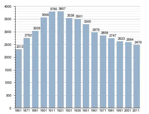 في سنة 1861 بلغ عدد السكان 2٬312 نسمة، وتطور العدد ليصل في سنة 2011 لـ 2٬476 نسمة.