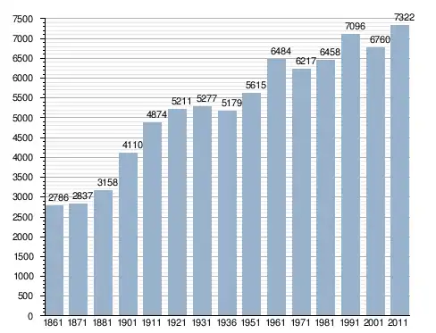 في سنة 1861 بلغ عدد السكان 2٬786 نسمة، وتطور العدد ليصل في سنة 2011 لـ 7٬322 نسمة.