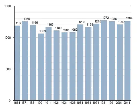 في سنة 1861 بلغ عدد السكان 1٬188 نسمة، وتطور العدد ليصل في سنة 2011 لـ 1٬264 نسمة.