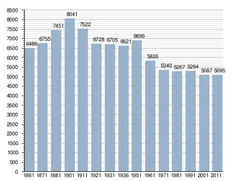 في سنة 1861 بلغ عدد السكان 6٬486 نسمة، وتطور العدد ليصل في سنة 2011 لـ 5٬095 نسمة.