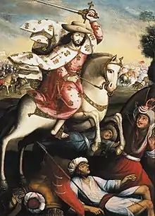 رسم لفنان مجهول من القرن الثامن عشر الميلادي يمثل القديس سانتياغو وهو يقتل المورو.