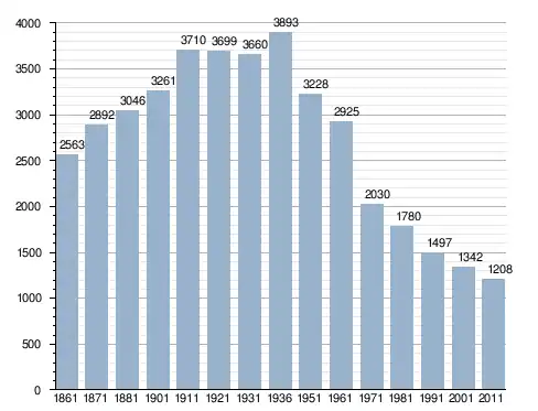 في سنة 1861 بلغ عدد السكان 2٬563 نسمة، وتطور العدد ليصل في سنة 2011 لـ 1٬208 نسمة.