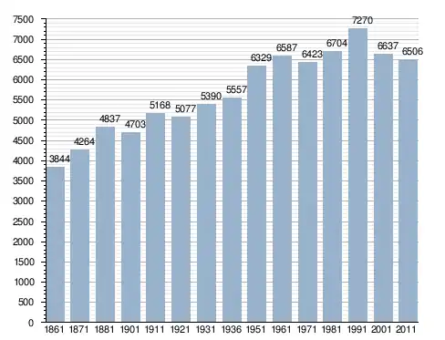 في سنة 1861 بلغ عدد السكان 3٬844 نسمة، وتطور العدد ليصل في سنة 2011 لـ 6٬506 نسمة.