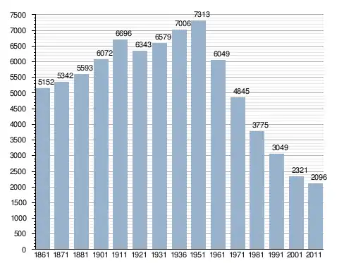 في سنة 1861 بلغ عدد السكان 5٬152 نسمة، وتطور العدد ليصل في سنة 2011 لـ 2٬096 نسمة.